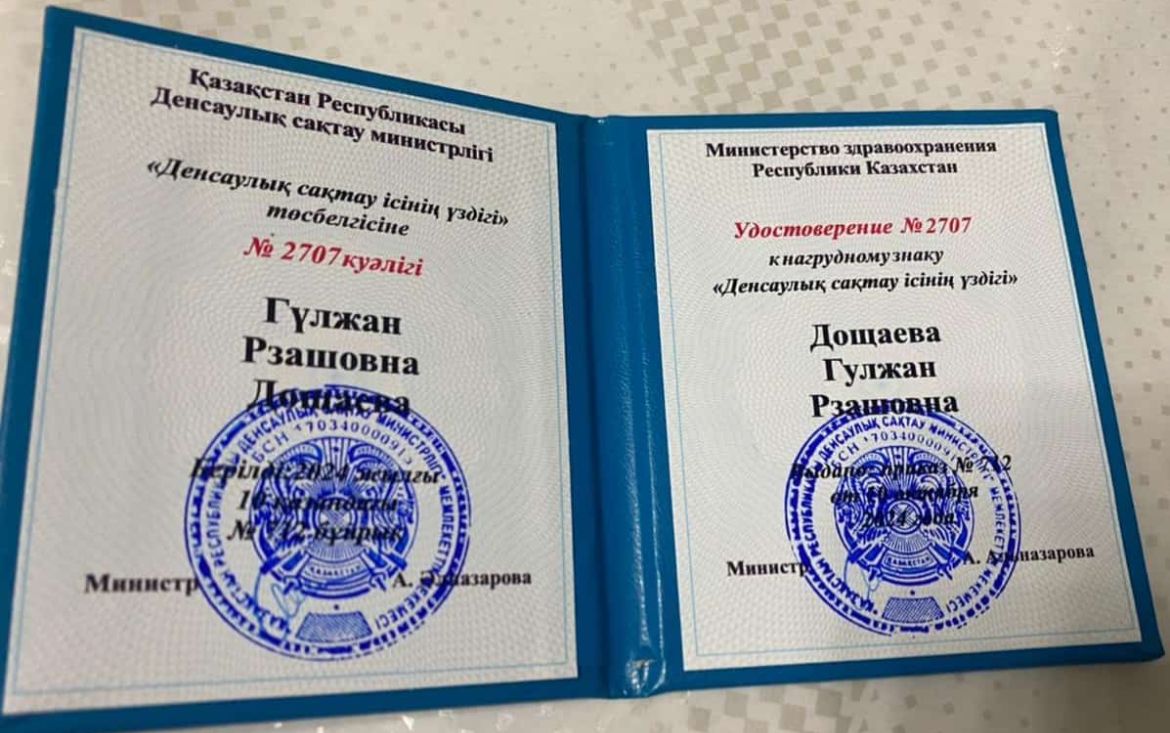 – Шын айтсам, бұл – мен үшін ерекше марапат. Өйткені, менің 30 жылдық дәрігерлік еңбек өтілім мен менің мерейлі жасыма тұспа тұс кеп, алып жатқан марапатым және өзіме, халық алдында берген есебім, атқарған еңбегімнің жемісі, жеңісі.Бұл марапат жалғыз менікі ғана емес ұжымдық еңбектің жемісі деп ойлаймын – дейді, педиатр дәрігер Дощаева Гүлжан Рзашқызы.