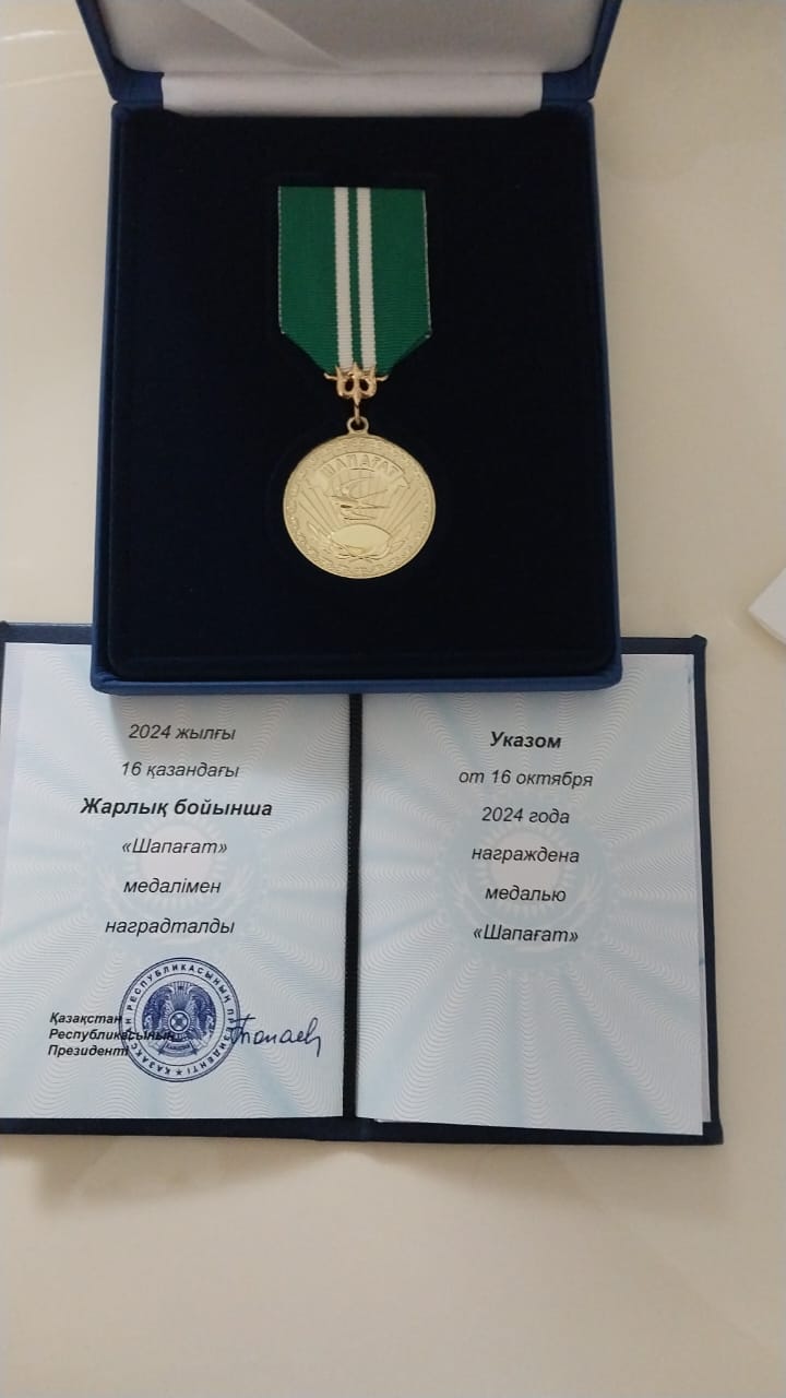 ТУТЕКОВА  ГАУХАР  КОНАКБАЕВНА « Шапағат » төсбелгі ҚҰТТЫ БОЛСЫН!